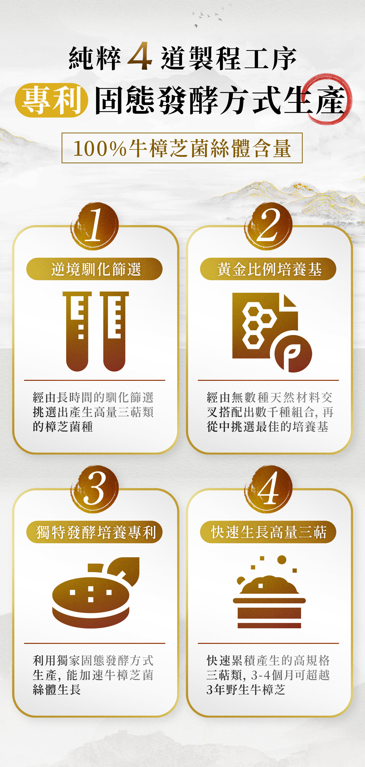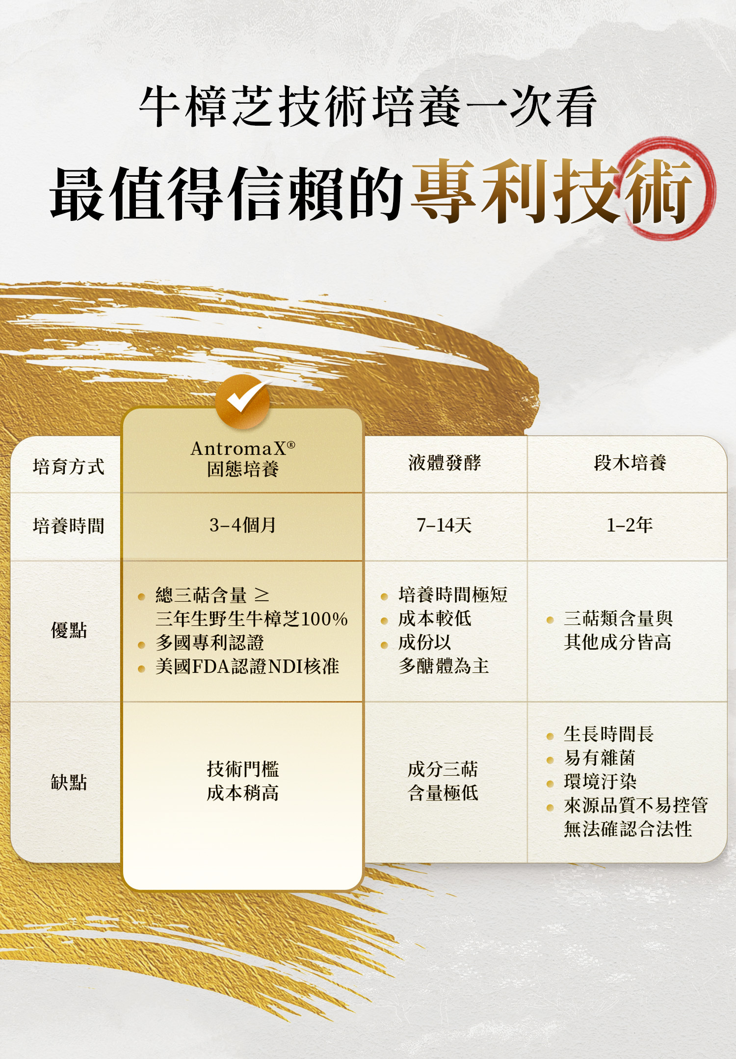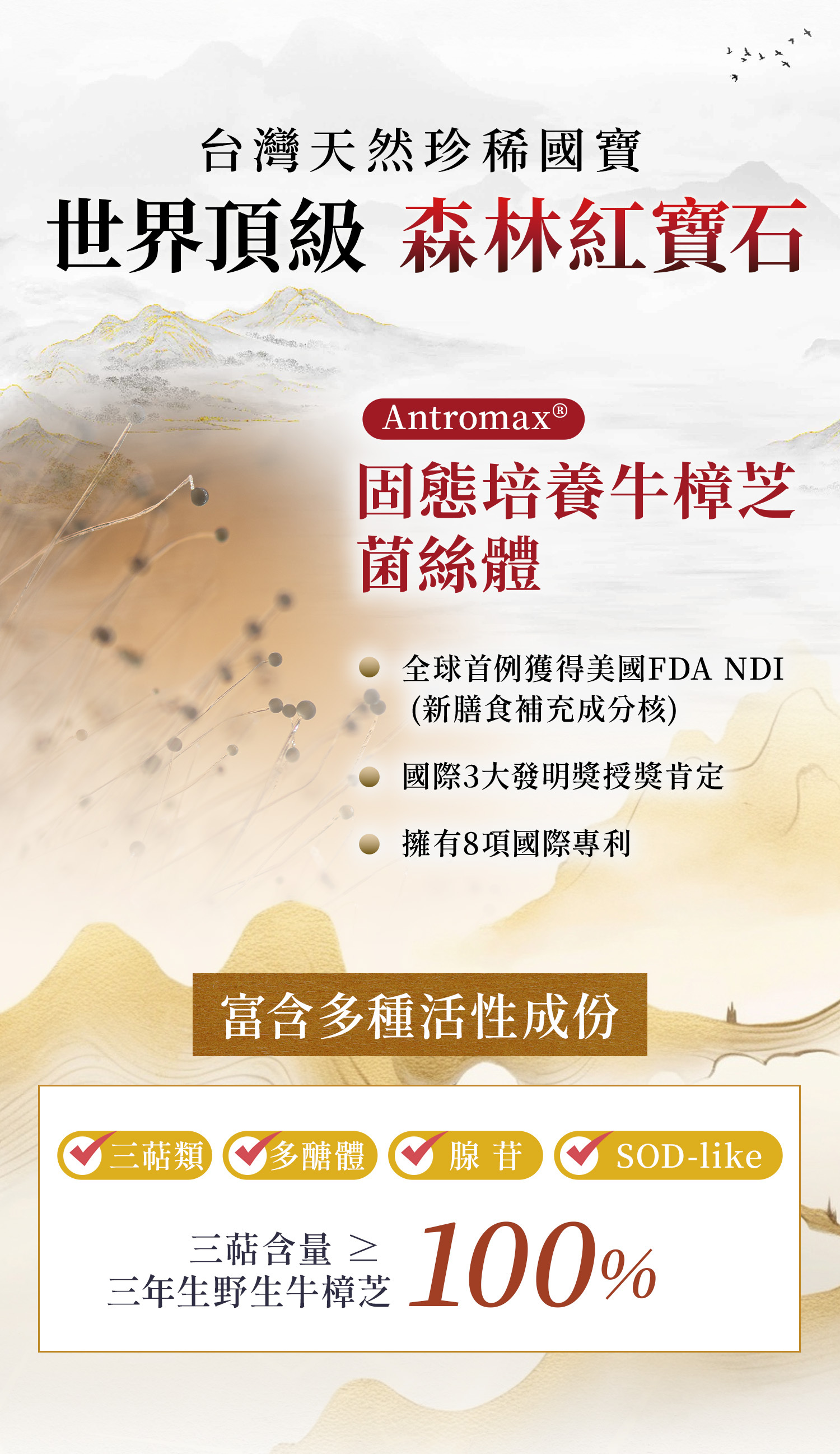 .高規格三萜類,總三萜規格可達三年野生牛樟芝100%以上