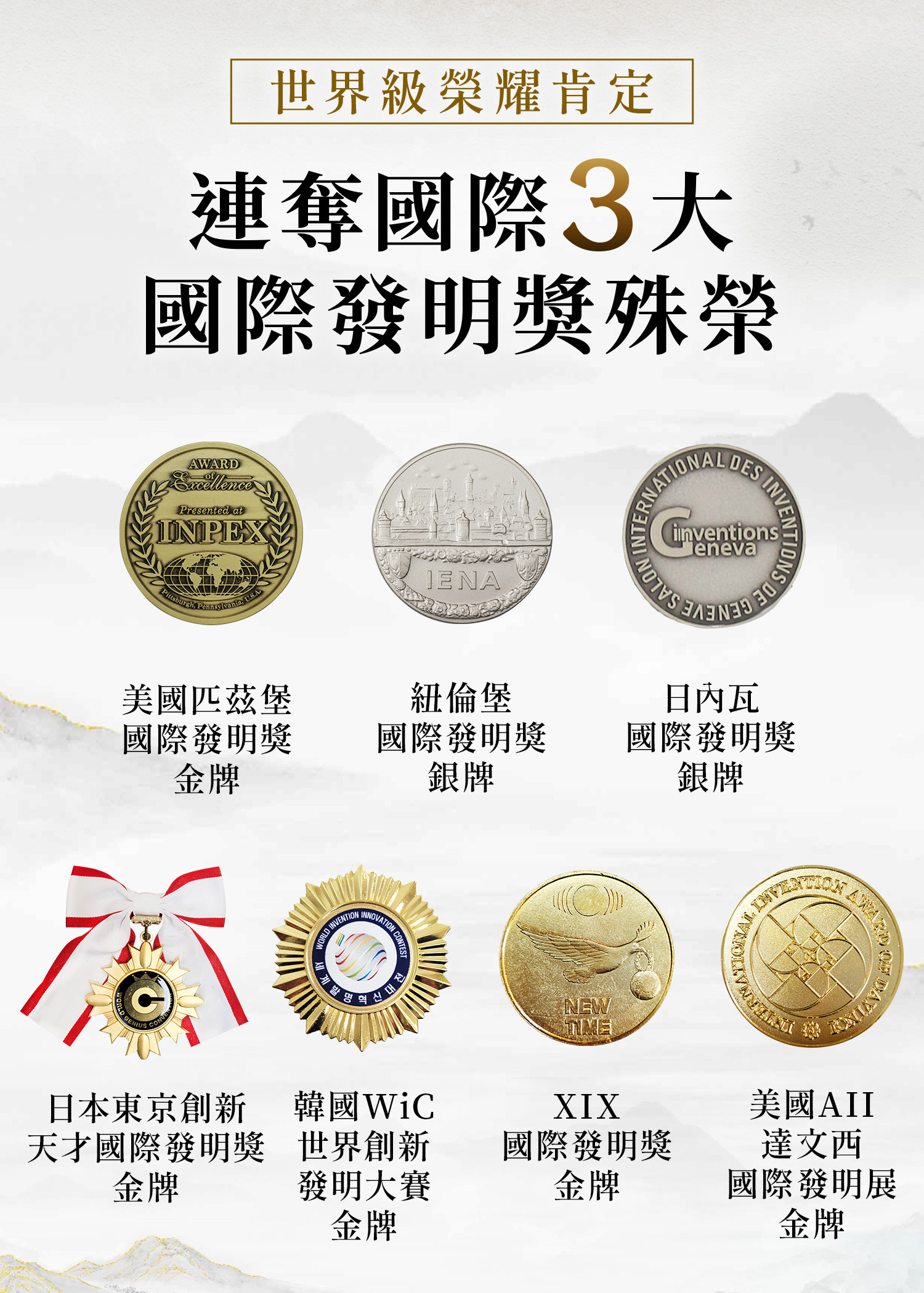 .獲國際三大發明獎及國內多項獎項肯定