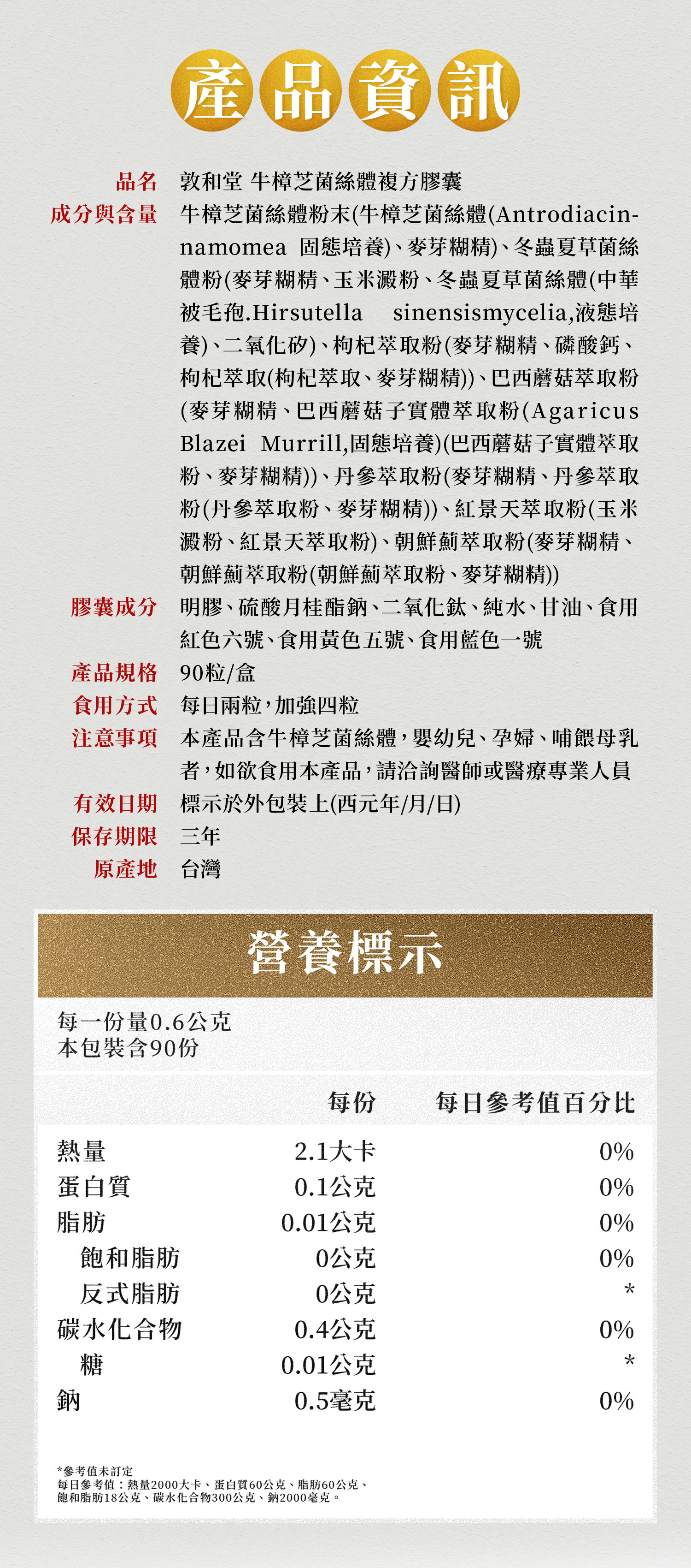 .牛樟芝菌絲體(固態培養)採用台灣權威生物資源保存及研究中心標準之菌種