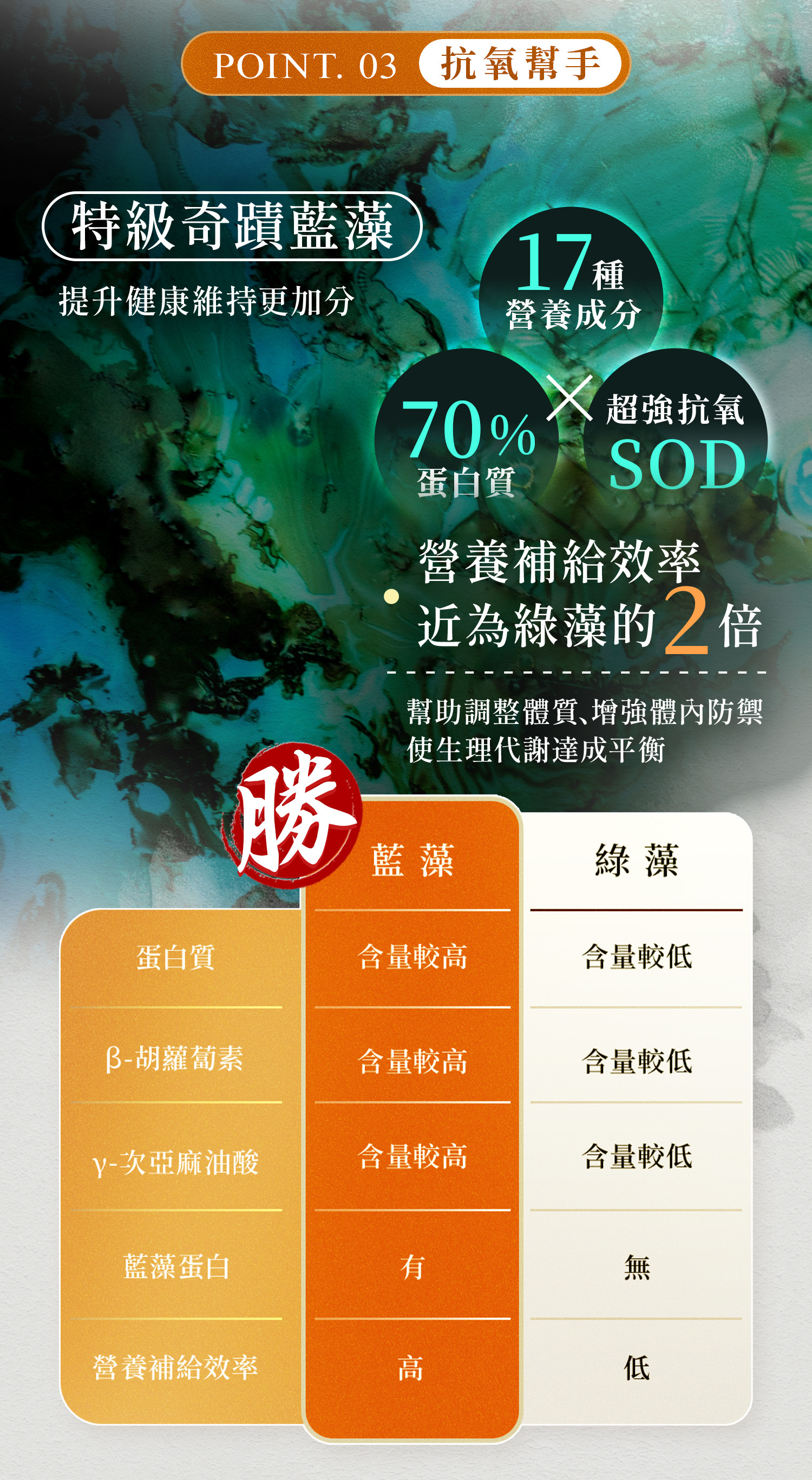 .三大藻類完整營養精華:黑角藻、藍藻、束絲藻